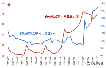 同時(shí)我們也注意到,私營工業(yè)企業(yè)的資金鏈條已經(jīng)普遍處于緊繃狀態(tài)。根據(jù)國家統(tǒng)計(jì)局最新的數(shù)據(jù):2019年11月,私營工業(yè)企業(yè)應(yīng)收票據(jù)及應(yīng)收賬款金額達(dá)到5.025萬億元,同比增速32.3%,這也是2007年以來的最高同比增速。同期,私營工業(yè)企業(yè)的應(yīng)收賬款平均回收期達(dá)到44.6天,較2019年的峰值有所緩解,但仍處于歷史高位。